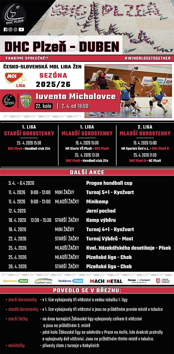 Ve čtvrtek 2.4. před velikonočními svátky se v hale 31. ZŠ odehrálo další utkání MOL Ligy, ve kterém ženy DHC Plzeň přivítaly silný celek Iuventa Michalovce. Domácí hráčky dlouho držely se soupeřem krok a […]